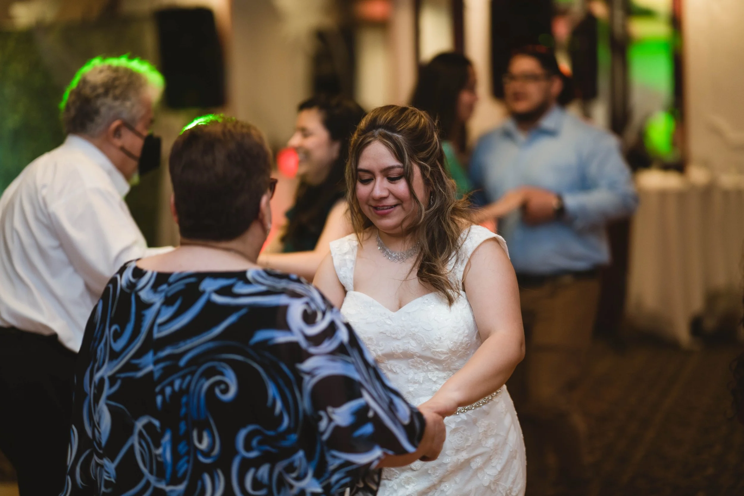 Beckoned out of their shells by the tenacity of her presence, the mother of the groom led would-be bystanders along a vivacious conga line that grew as it collected the souls of tables it wove through. The night’s tone was accordingly set; the lights went dim, and rhythms commanded by the Rosario DJs poured energy into a room full of guests set on seeing it to a contenting fill.